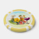 Poker chips with tropical design. Delicious cocktails, with coconut and pineapple, and something purple sit among hibiscus and anthurium flowers in this design. The yellow chip border is optional. Use for a fun game night, or special occasion celebration.