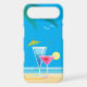 An illustration of a tropical cocktails in bright pink and blue on a beach background accented with palm leaves and seagulls, decorate this iPhone 6/6s Plus Case, reminding us of warm sunny vacations.
