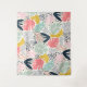 Colouful collage style and matisse inspired pattern. Tropical leaf and bold plant shapes Bright coral pink, mustard yellow and mint greens with a contrast of dark navy make this pattern fun and colourful. Spots and geo patterns add a fun and playful element.