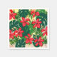 Tropical inspired pattern of red hibiscus flower and green foliage jungle theme. This modern colourful vibrant pattern design is bold and beautiful.