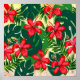 Tropical inspired pattern of red hibiscus flower and green foliage jungle theme. This modern colourful vibrant pattern design is bold and beautiful.