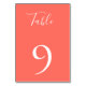 Trendy tropical coral, solid colour table number card, designed to match our Bohemian Summer Collection.