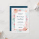 Nautical, "Under the Sea" theme wedding invitation features a watercolor coral reef and seashells in shades of aqua, mint, coral, and pink with navy blue lettering. Reverse side is a pattern of seashells and coral on a navy blue background. Coordinates with my "Tropical Reef" collection and is perfect for beach, nautical, ocean, coastal and destination wedding themes. Original artwork KL Stock