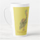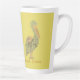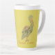 Mosaic, graphic drawing, of a Tropical crane, displayed in-exotic, island patterns, of, orange, olive-green, taupe, yellow, brown, black, and white.