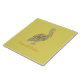 Mosaic, graphic drawing, of a Tropical crane, displayed in-exotic, island patterns, of, orange, olive-green, taupe, yellow, brown, black, and white.