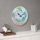 Dream of tropical waters with this full-colour illustration featuring a cruise ship moving through tropical ocean waves with a palm tree.