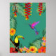 Tropical Delight hummingbird toucan flowers Poster