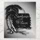 Swaying palm trees on island with names and date. Great for a destination wedding on the beach
