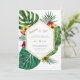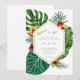 Minimalistic Wedding Invitation Card with Tropical Design, Flowers and Leaves