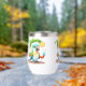 A Cute Stainless Steel Wine Tumbler Designed With A Tropical Parrot With Palm Tree And Tropical Drinks