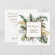 Wedding personalised inspirational thank you card depicts an elegant watercolor tropical palm design including large leaves of monstera and graceful branches of eucalyptus trees in green and gold shades. The thank you note can be customised or deleted for a hand written message.