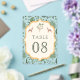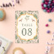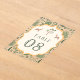 Elegant Indian wedding table number featuring cute elephants and lush tropical leaves pattern.