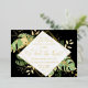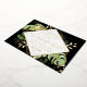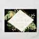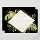 This elegant tropical themed wedding reception invitation features exotic foliage with gold accents on a black background. A modern geometric gold foil frame highlights the gold foil text. Gold foil splatters accentuate the botanical design and brings a bit of sophisticated whimsy to the invitation. "We Tied the Knot!" is featured in the middle of the invitation. This is the perfect wedding announcement and reception invitation for any tropical themed wedding.