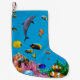 This vibrant Christmas Stocking featuring tropical fish, a colorful coral reef and dolphin is perfect for those who love tropical warm summer vibes & Frutiger Aero aesthetic. This cool design not only reflects personal style but it also stands out from all the other stockings on the wall!