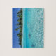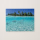 This game puzzle is shown with a photo print of a beautiful tropical beach and fish scene.