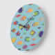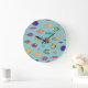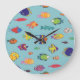 Tropical fish, vintage line pattern large clock