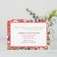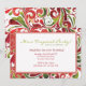 A colourful invitation with tropical green and red swirls and abstract flowers. The centre has a white frame for your personalisation.