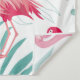 Colourful flamingo and leafs dance in rhythm. Summer's tropical embrace.