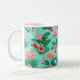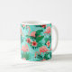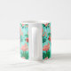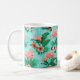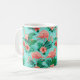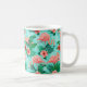 This ceramic coffee mug is shown in a lovely tropical palms flamingo print.