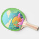 The art on this ping pong paddle features a colourful tropical scene with flamingos, palm trees, and a beautiful island backdrop. The design is not only visually stunning but also adds a fun and playful touch to any game of ping pong.