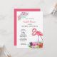 This festive invitation is ideal to celebrate a Bridal Shower with a Summer, Tropical, Luau or Hawaiian theme. It features a colourful illustration with a Flamingo and tropical flowers and leaves. Chic, fun yet elegant invitation.