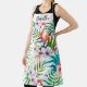 Beautiful tropical accent apron with tropical elements in watercolor: flamingo bird, orchids, hibiscus flowers and palm leaves, makes a great gift for her.