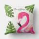 Tropical Flamingo Pink Palm Leaves Green Art Bird Cushion