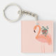 Tropical Flamingo with Potted Plant Hand Drawn Key Ring