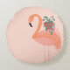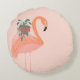 Tropical Flamingo with Potted Plant Hand Drawn Round Cushion