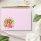 Vibrant watercolor illustration of two flamingos against a green palm tree leaf and electric blue backdrop features on this attractive envelope. For matching items and custom edits contact designer LeahG.