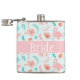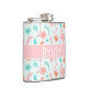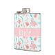 Using a beautiful blue background with pink flamingos, there is also pink and blue flowers and feathers that decorates this design. In the middle "Bride" is written on a pink background. Purchase your bridal flask today!