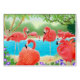 Airbrush painting of a flock of Caribbean flamingo birds by illustrator, Carolyn McFann.
