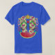 I give wanted to give this a 4 instead of a 5 because these Basic DARK T0shirts run unexpectedly SLIM or Narrow. Which is great if you do not have a potbelly, but I have a paunch. It isn't the shirt's fault that I've got a beer belly. The design and shirt itself is a quality cotton shirt. The color is more of a deep purple, but still a very pretty color. The Basic DARK T-shirts run a bit SLIMMER than the Basic Ts. The neck is a fraction narrower (or seems to be narrower) also. I'm a paunchy middle-aged woman and my neck is 12 inches (31cm) thick and the neckline fell about the same as in the photo of the man, and I had the desire to tug it a bit. So if you're a thick necked man or like loose shirts, be aware these are slimmer shirts. Once I get rid of my lockdown paunch it'll look great. The shirt washed well in cold water with no apparent bleeding. We don't have a dryer, so it hung dry. Did not shrink. Love the colors and the design. The design looks smaller on my shirt than it does on the model on-line. But still, it looks good on the shirt. The printing looks as it does on the model, just the size seems fractionally smaller. Washed garment in cold water, hung dry and design appeared unaffected.