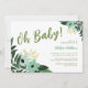 Trendy modern baby shower invitation design with a bold tropical floral border and stylish calligraphy script font. Personalise the design with your baby shower party details with blank space on the back to add photos or additional text. Use the design tools to customise all of the text fonts and colours to create a unique one of a kind design.
