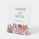 Tropical Floral Cards and Gifts Pedestal Sign. Keep things organised and stylish with this Cards and Gifts Tabletop Sign, featuring vibrant watercolor palms and florals in fuchsia, blush, and lush green tones. Whether displayed at the entrance or on your gift table, it helps guests know exactly where to leave their thoughtful tokens. Personalise the text and layout to suit your tropical theme. Add a touch of coordinated beauty while making your space feel effortless and inviting.