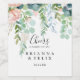 These tropical floral cheers wedding wine labels are perfect for a modern wedding. The design features illustrated white, yellow, pink, blush flowers with beautifully watercolor green leaves, inspiring elegance.