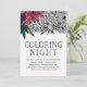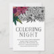 Hosting an evening of adult colouring? Invite friends to share their creative side with these beautiful colouring night invitations, featuring a top border of lush tropical flowers in black and white, partially coloured in with bright and vibrant hues.