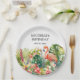 Tropical Floral Flamingo Happy Birthday Name Paper Plate