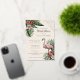 This elegant bridal shower invitation with real gold foil features hand-drawn tropical flamingo themed illustrations in black ink, showcasing pink flamingos, hibiscus and jasmine flowers and tropical leaves and a modern wave corner detail in gold foil. "Bridal Shower", Bride's Name and event Date are also in gold. The back features a beautiful pattern with these elements plus pineapples and a tropical drink.