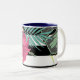 Tropical Floral Flowers Leaves Black White Stripes Two-Tone Coffee Mug