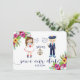 Elegant, exotic, destination card design featuring Luau Hawaiian Flowers Bouquets, navy blue stripes, a faux silver foil anchor, a semi-transparent shape for information with a faux double silver frame. For matching items, please, visit my Tropical Floral Luau Navy Blue Stripes Wedding Collection.