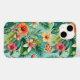 This design includes lush green palm leaves and bold, colourful hibiscus flowers in shades of red, orange, yellow, and pink, set against a refreshing turquoise background.