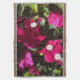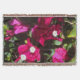The floral print on this Throw Blanket is an original photograph by ZoeSPEAK of bougainvillea, a coastal, tropical flowering plant or vine. The one pictured in the photo is a deep magenta colour, with tiny bright white flowers, all set against a background of green leaves in light and shadow. The dark, rich colours give this print a retro vibe.