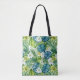 This shoulder tote bag is shown with a multicolored tropical palm print design.