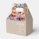We designed this tropical floral wedding favour box to complete your rustic dark tropical wedding. With its bohemian watercolor greenery to its modern boho summer flowers, including plumeria, monstera, and dried lotus, the design is sure to set off your moody, minimalist lavender and orange theme. Change the text and add a photo to make it your own. Also, make sure to look through the rest of the collection to find coordinating items that will bring your whole wedding together!