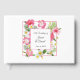 This wedding guest book is shown in a lovely watercolor of tropical flowers print; text is shown in a slate grey colour.