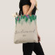 This bridesmaid bag offers a graphic of bright coloured tropical flowers and green palm branches across the top of the bag. The word "Bridesmaid" appears in trendy hand written style text. To make this bag truly unique and personal, you can also personalise it with your name.