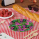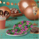 Tropical flowers and plants on black paper plate