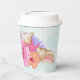 This beautiful paper cup features pink and orange hibiscus flowers surrounded by sea shells with a light blue watercolor wash background. Perfect for a luau or a mermaid party.