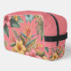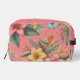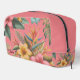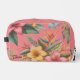 A nature inspired theme adorns your accessory pouch with a tropical hibiscus design, featuring vivid hues of yellow, pink, and cream, personalised with your chosen name or title. This lively pattern is ideal for a practical pouch, complete with a coral pink background that can be customised to any colour you desire.